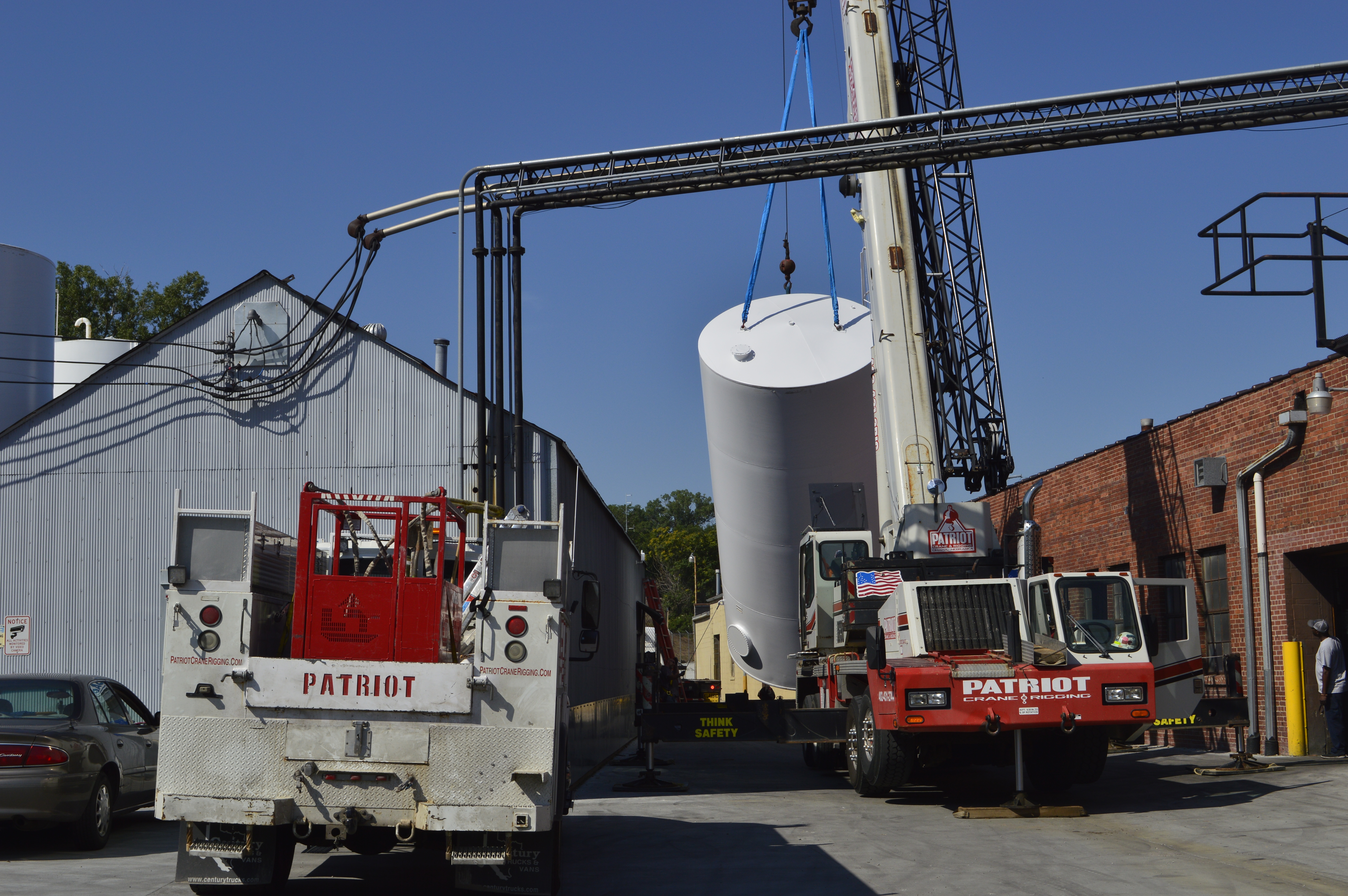 Under a clear blue July sky in Omaha, NE semi-trailers with oversized loads lined the street near the Nox-Crete corporate headquarters. Each carried a key element in new efficiencies coming to the Nox-Crete plant; four 20,000 gallon storage tanks in all. Throughout the afternoon, a crane carefully lowered these tanks into place with Nox-Crete operations team members keeping close supervision.