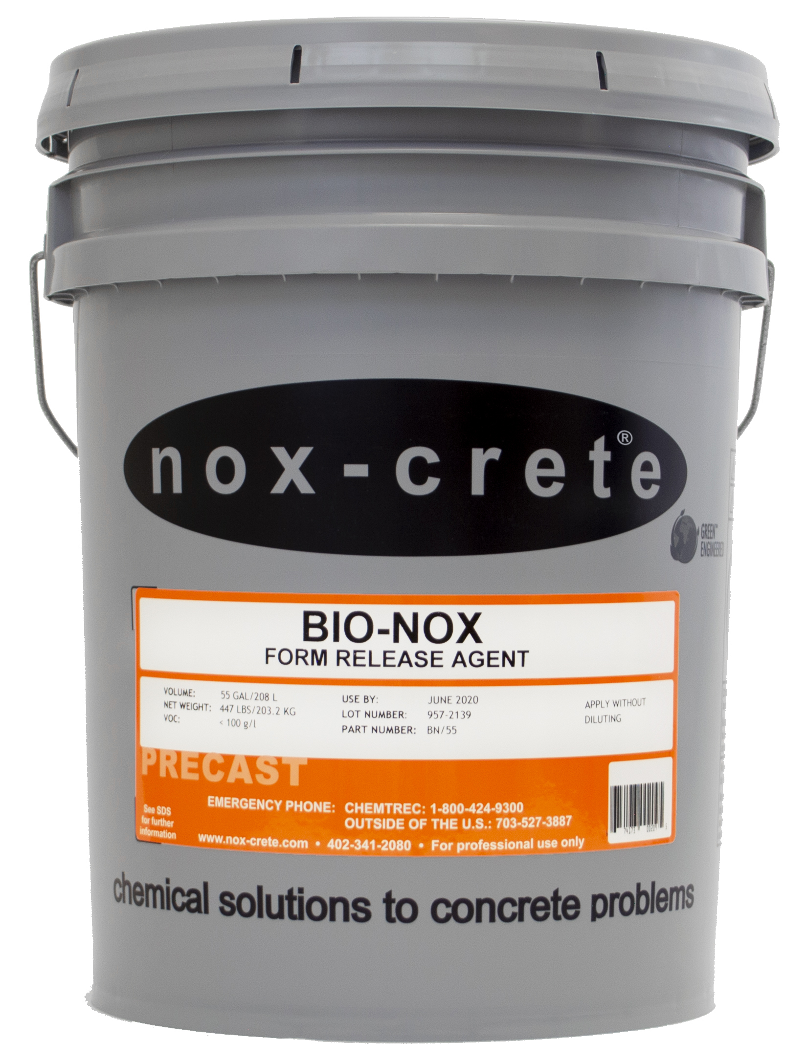 Bio-Nox is a water-based, biodegradable form release agent that chemically reacts with concrete to create a soap-like, bond-preventing film that provides a high-grade architectural finish, while remaining gentle on forms. Bio-Nox can be used on most smooth, clean form surfaces such as steel, HDO, MDO, plastic, fiberglass, bare plywood and plywood faced handset forms.