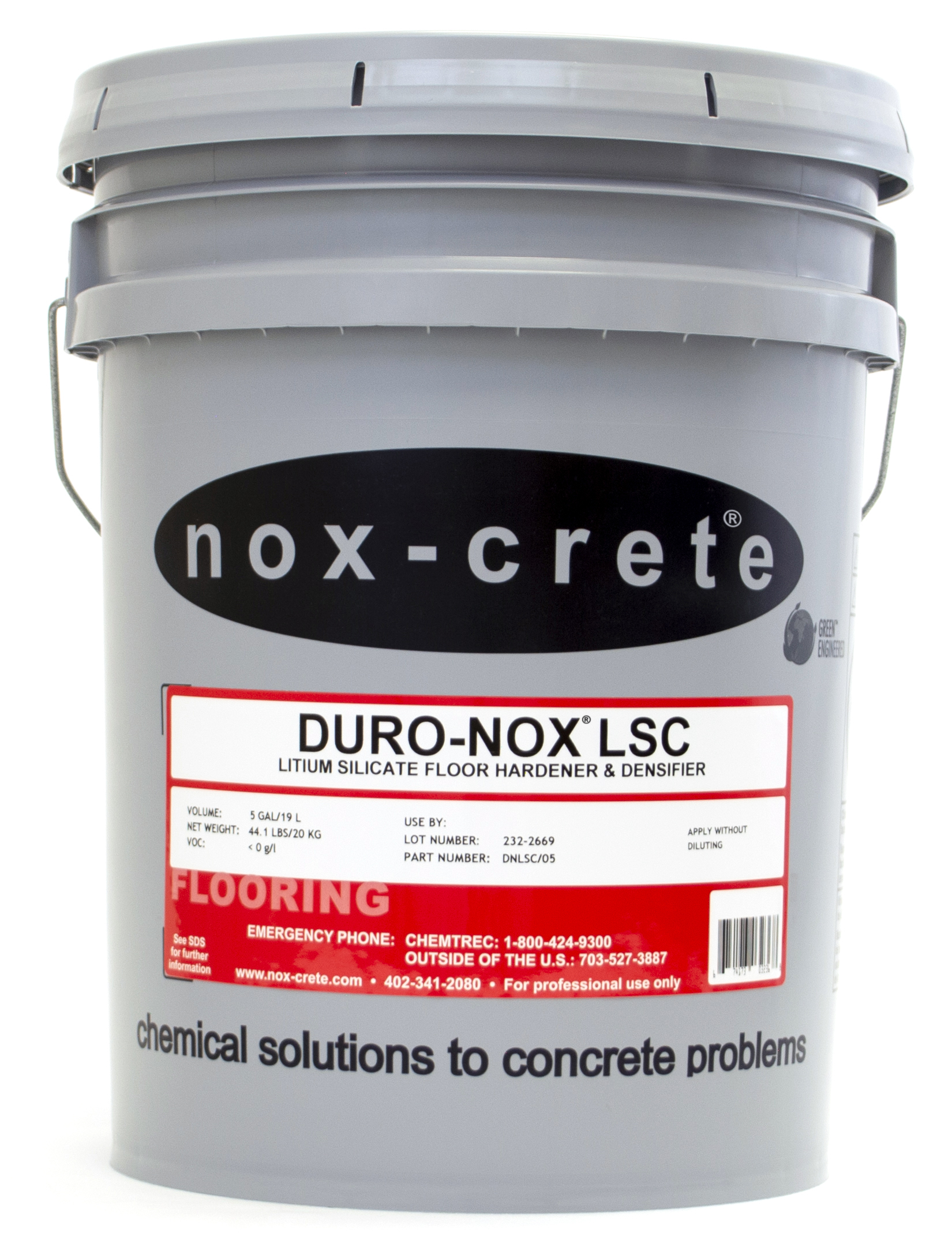This lithium silicate liquid floor hardener, Duro-Nox LSC, offers all the advantages of Duro-Nox, but with a lithium silicate formulation that eliminates the costly and environmentally damaging rinse removal step required with sodium silicate floor hardeners.
