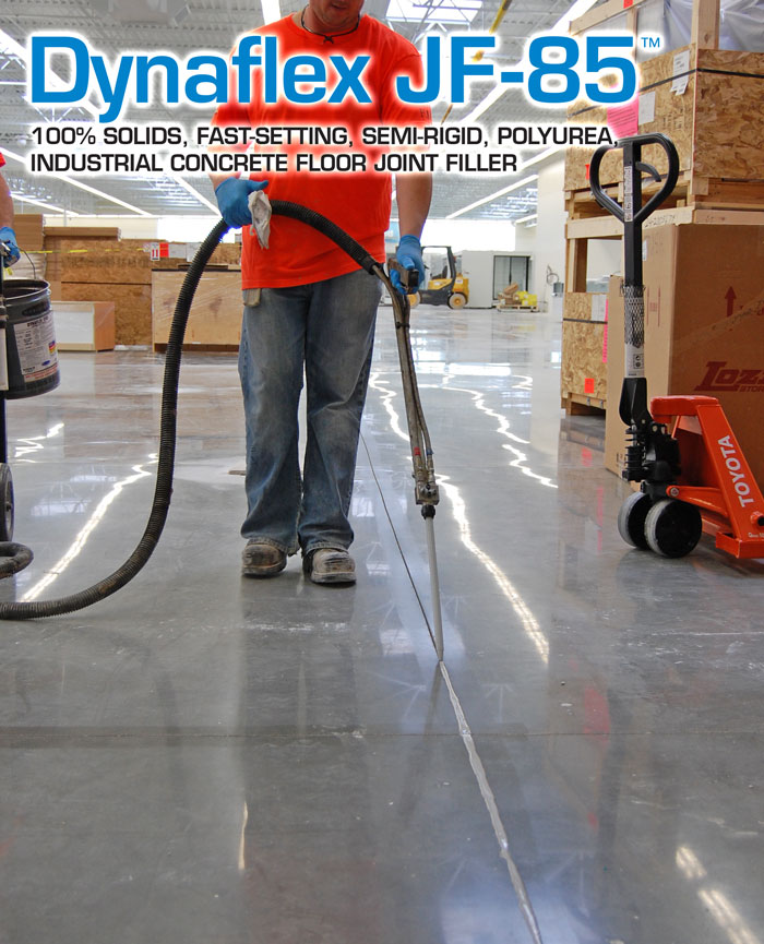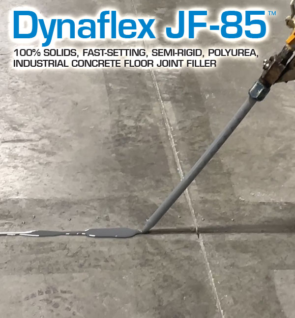 Dynaflex JF-85 is a fast-setting, tough, semi-rigid, two component, 100% solids, polyurea, industrial concrete joint filler with a Shore A Hardness of 85. Dynaflex JF-85 is specifically formulated to support heavy loads without deflection, protecting joint edge shoulders from potential spalling. This joint filler is ideal for environments with frequent forklift use, as it supports and absorbs high-impact wheel traffic.