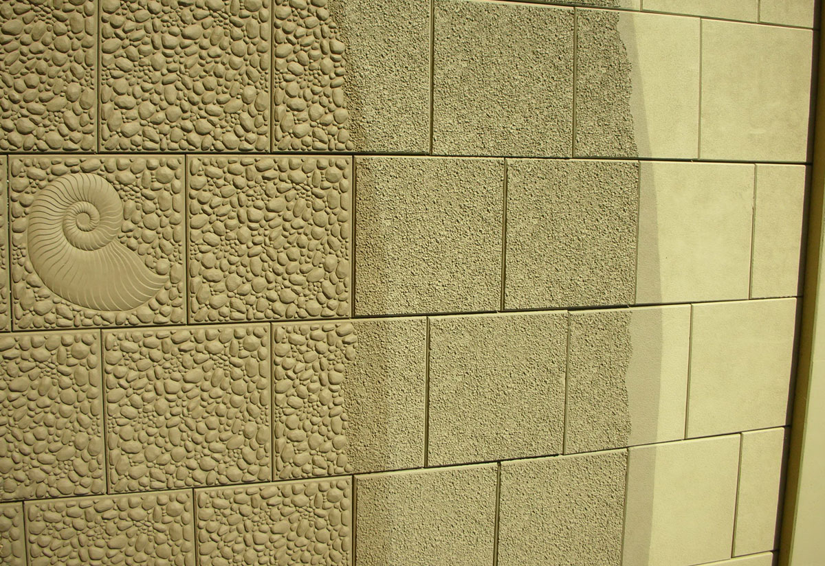 • On smooth face, broken face and fractured fin concrete blocks to reduce moisture absorption such as that from wind-driven rain
