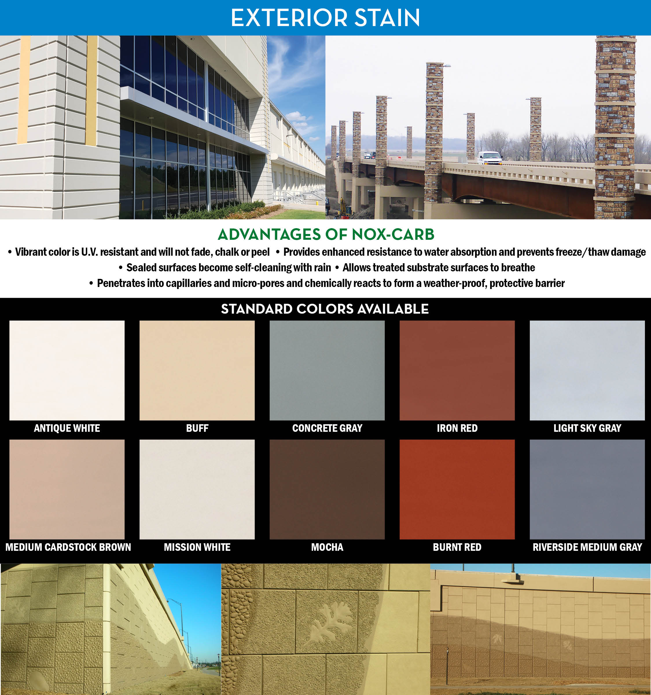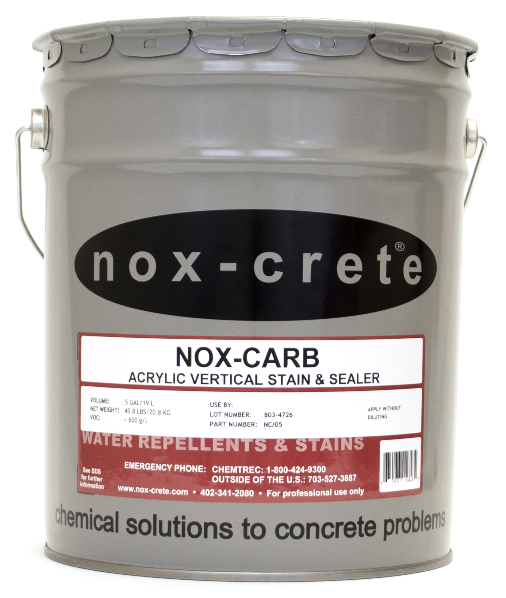Nox-Carb is a breathable, pigmented, water repellent concrete stain and sealer for exterior vertical concrete surfaces as well as masonry surfaces.