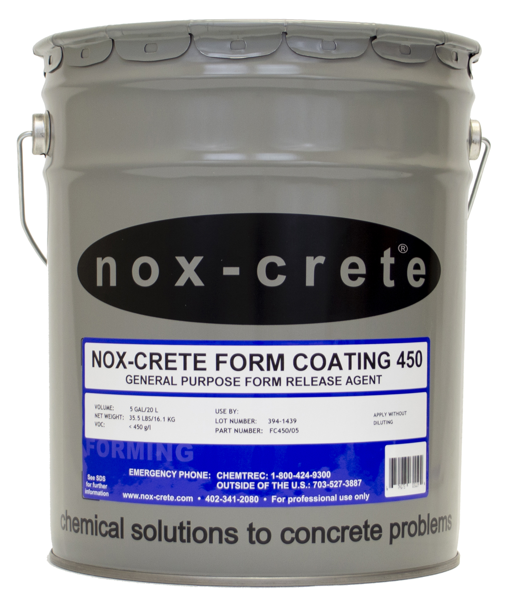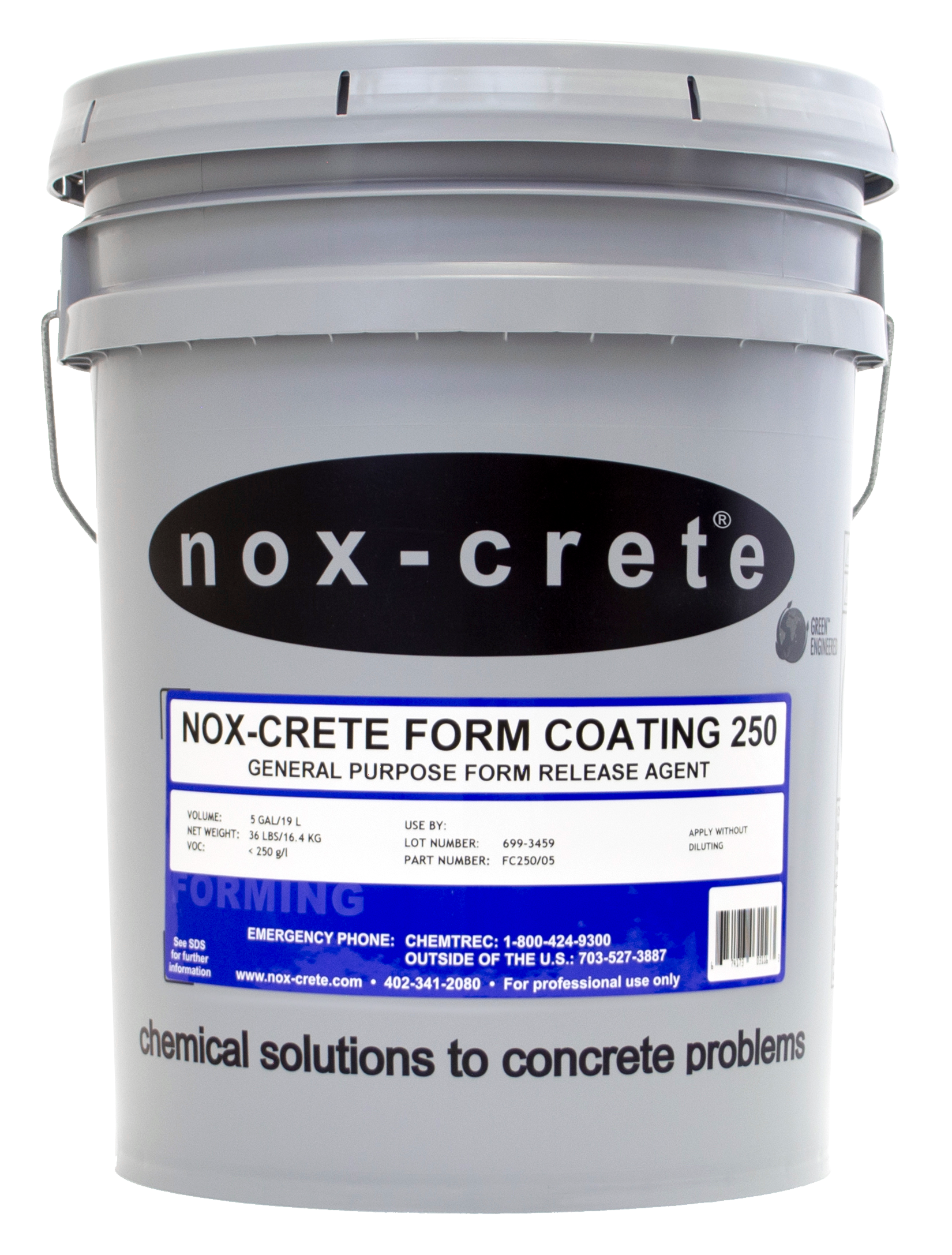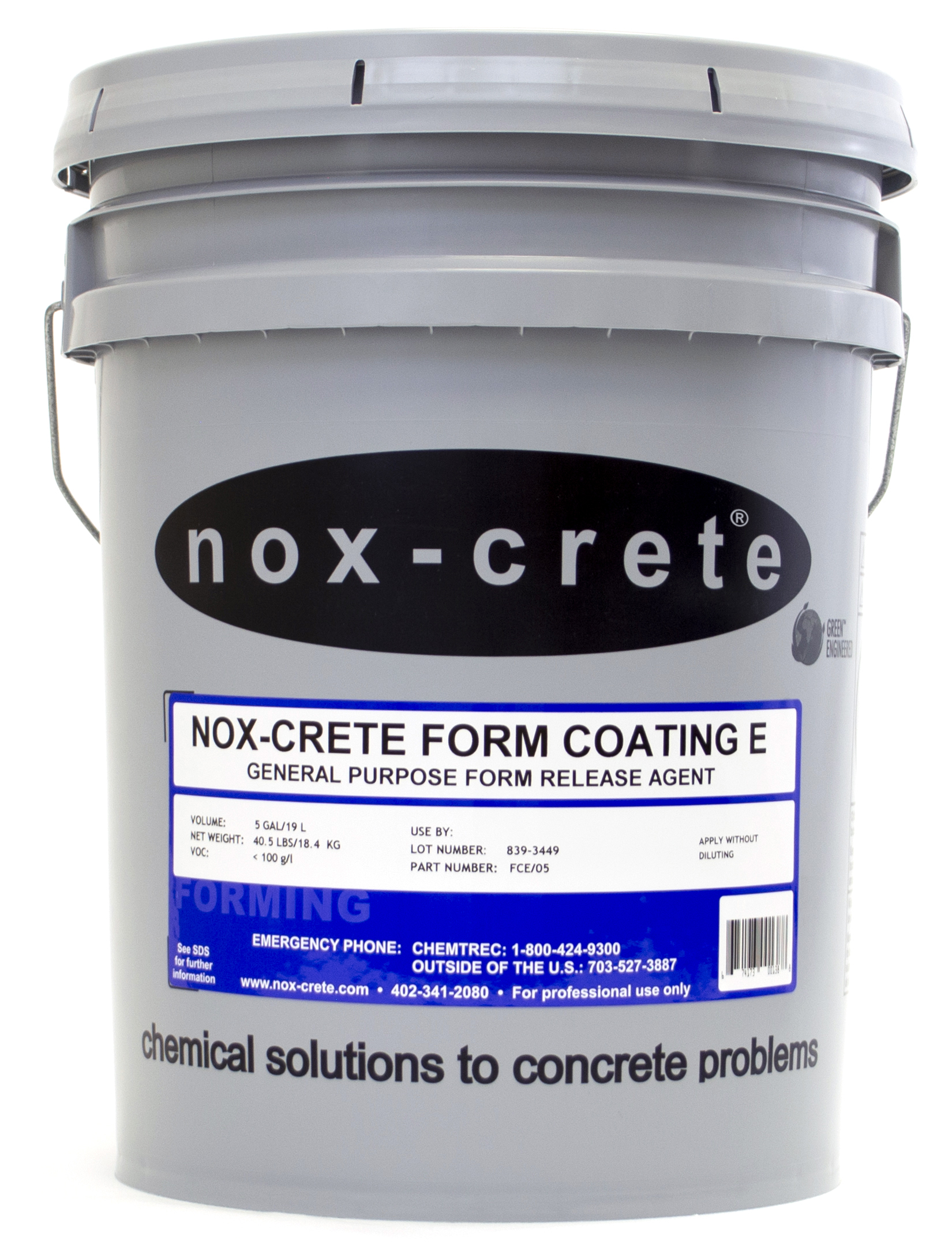 Nox-Crete Form Coating provides exceptional, unduplicated results on non-overlaid plywood, dimensional lumber, MDO plywood and plywood-faced handset forms. This product is also suitable for use on most forms, including wood, steel, and plastic. When used properly, Nox-Crete Form Coating offers multiple benefits beyond a crisp, positive release. It reduces concrete buildup, increases wood form longevity through reducing the absorption of alkaline bleed water and substantially reduces surface voids.