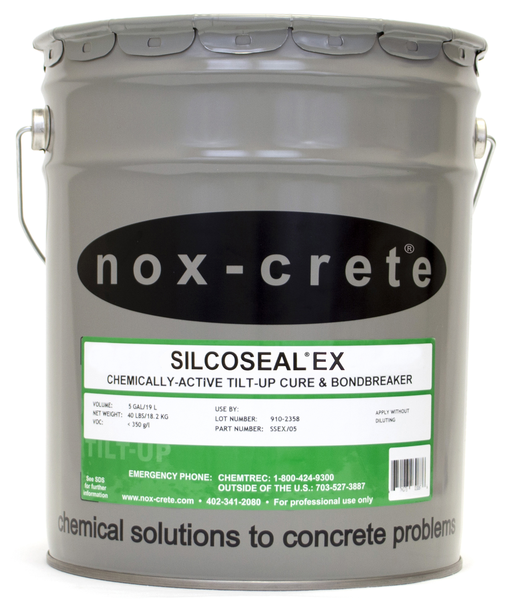 Instead, SILCOSEAL EX is formulated with organic compounds which react chemically with excess limes present in the concrete surface to form metallic soaps which, when properly applied, eliminate wall panel sticking. Site cast wall panels separate easily and completely without the need for pry bars or wedges commonly used with membrane-forming bondbreakers.